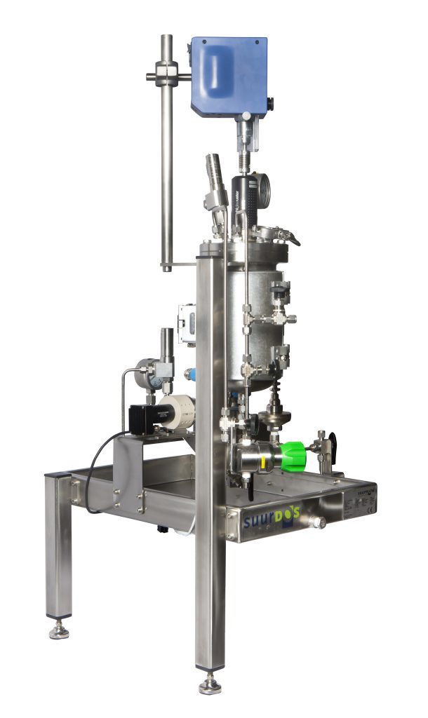 Suurmond designed a compact dosing system with heatable pressure vessel on a small platform that can be placed next to the reactor in the fume hood.
