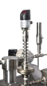 The monomers to be dosed into the reactor have a high melting point and must be processed at 150°C – 200°C. In addition, the viscosity ranges from 1 to 1,000 mPa·s and both the monomers and the added solvents are chemically aggressive. The materials used must therefore be corrosion resistant. The stirred vessel must be able to be pressurized (max 5 barg) to inertize. The available space in the fume hood is limited to 450 x 600 x 1000 cm.