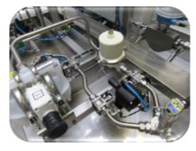 The two pumps are installed in series, one for dosing, and the other as a charge pump for the dosing pump. Next to the pumps is the double-walled resin tank, which Suurmond has equipped with a smart assembly including an extra valve to prevent dry-running of the pumps. To emulate the production environment as closely as possible, the system is further equipped with a pressure control valve combined with two different filters. Quick couplings are used to simplify the exchange of filters. These couplings are of the dry-break type to avoid unnecessary product losses during filter exchange. This results in greater efficiency, ease of use, and a clean work environment.
