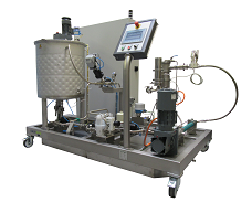 The two pumps are installed in series, one for dosing, and the other as a charge pump for the dosing pump. Next to the pumps is the double-walled resin tank, which Suurmond has equipped with a smart assembly including an extra valve to prevent dry-running of the pumps. To emulate the production environment as closely as possible, the system is further equipped with a pressure control valve combined with two different filters. Quick couplings are used to simplify the exchange of filters. These couplings are of the dry-break type to avoid unnecessary product losses during filter exchange. This results in greater efficiency, ease of use, and a clean work environment.